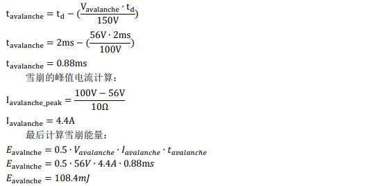 IPB180P04P4-03 的耐電壓 40V,典型雪崩電壓可以估算 1.4 x 40V = 56V,可以通過斜率的比例很方便的算出雪崩的時間: